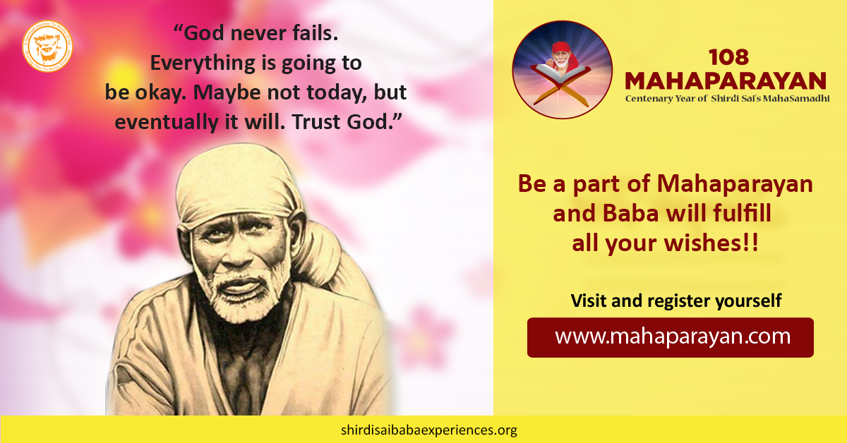 Sairam! My sister is living in Mumbai. She is working in a hospital. Last week she was suffering from high fever. When I got to know this I felt so tense due to this pandemic situation. I am staying away from her and none of our family members could visit her. All I could do is to surrender to our beloved Baba and beg Him to be with her and take care of my sister. I was praying to our Sai continuously. She underwent Covid test and we need to wait for the result. Those 2 days waiting period was the real testing period.