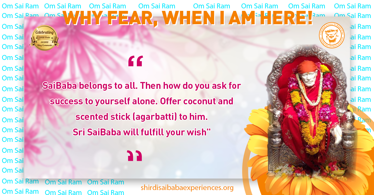 Anonymous Shirdi Sai Devotee from India says: Hi, I am a small devotee of Baba. My life revolves around Baba. He is the Supreme Master of all. I have innumerable experiences of Baba. Baba has always been there for everything. He is the sweetest and always listens to His children though He might check your patience but don’t give up on Him.
