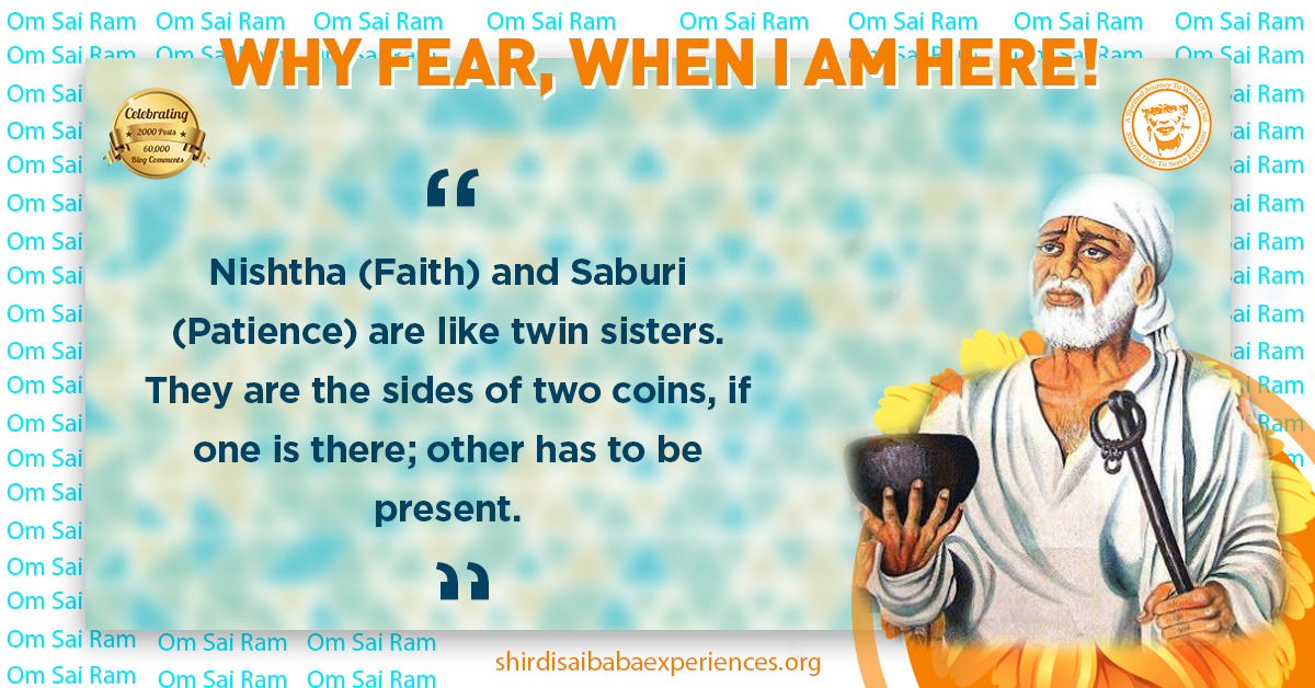 All tests happened; nothing serious came because of Baba’s grace. Not only this, the doctor said that there was no requirement of surgery as of then and that they would try to make it alright with medicines only. With Baba’s grace her mother would be fine. Thank You Baba for keeping everything normal and that no surgery was required. Please bless my friend and her mom. Please bless all Your children. Om Sairam, Om Sai Rakshak Sharnam.